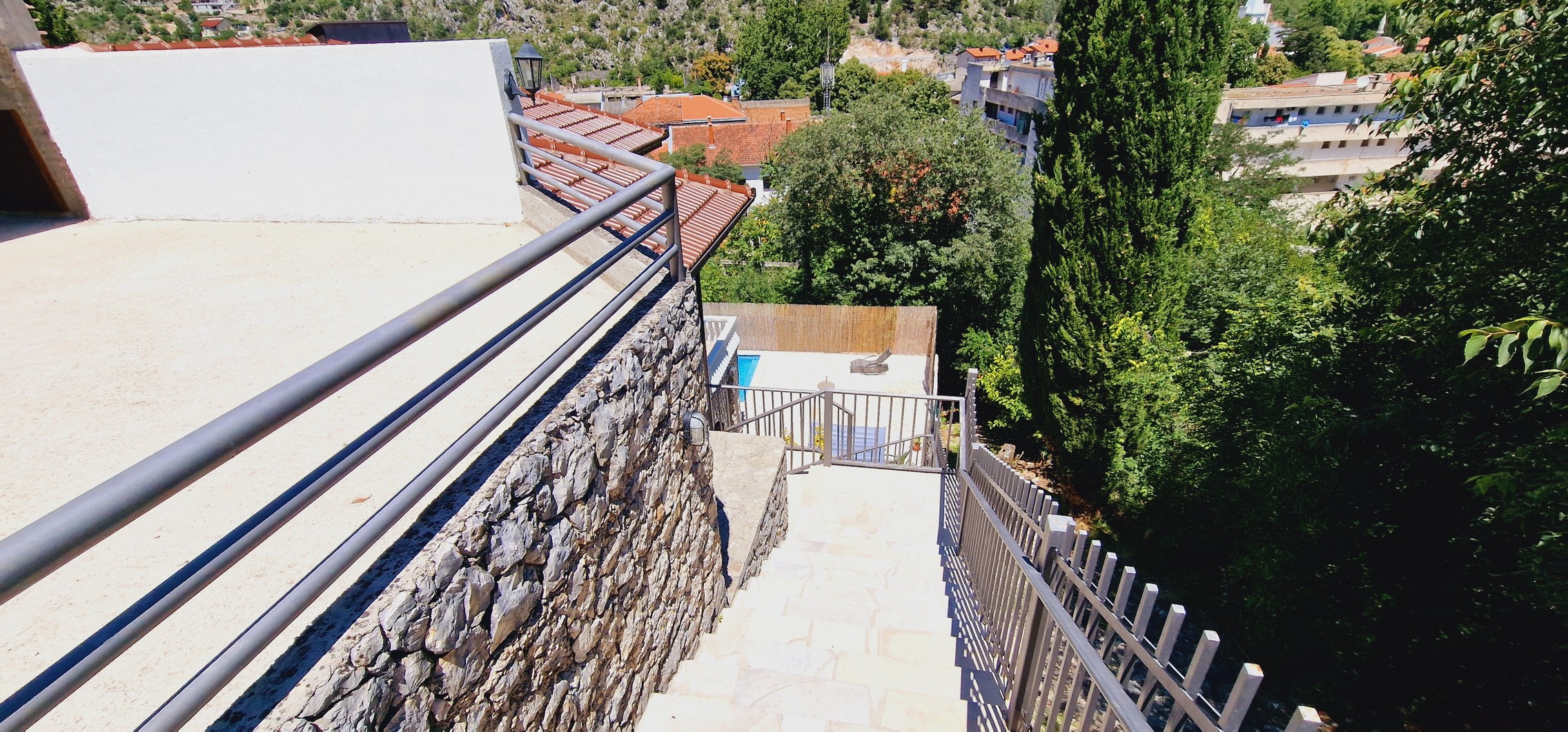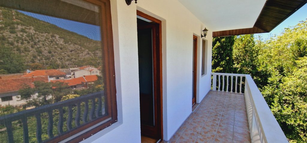 Tri spavaće sobe, od kojih dvije imaju direktan izlaz na veliku terasu s koje se pruža panoramski pogled na Stolac i okolna brda